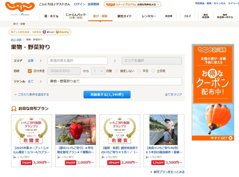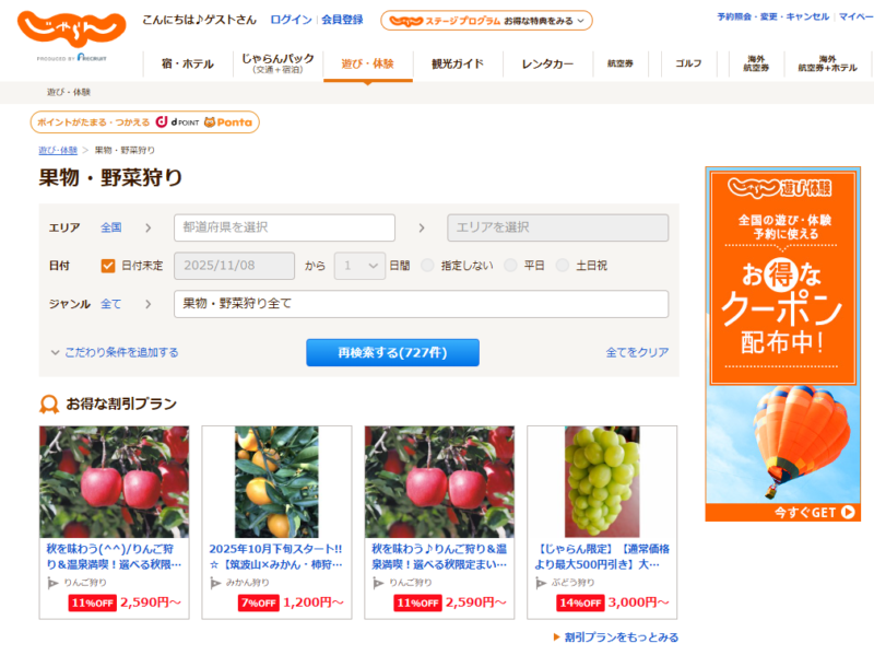 じゃらん 遊び・体験予約